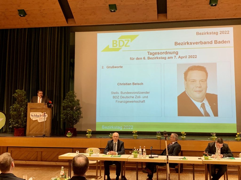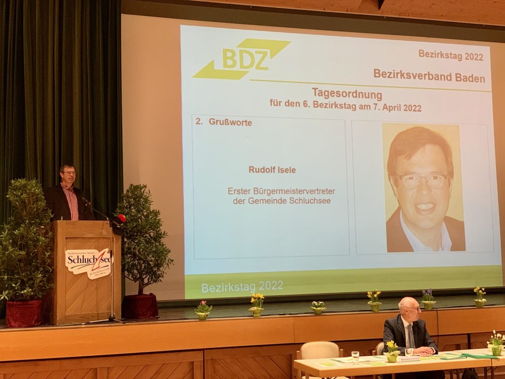Nach der Eröffnung des Bezirkstages durch den Vorsitzenden, Wolfgang Kailer, sprachen der erste stellvertretende Bürgermeister, Rudolf Isele, und der stellvertretende Bundesvorsitzende des BDZ, Christian Beisch, ein Grußwort. Rudolf Isele ging auf die Verbundenheit mit dem BDZ Bezirksverband Baden ein, der bereits zum 4. Mal in Folge seinen Bezirkstag in Schluchsee abgehalten hat. Anschließend verband Christian Beisch sein Grußwort mit einem Einblick in die Vielzahl der aktuellen gewerkschaftlichen Aktivitäten des BDZ auf Bundesebene.