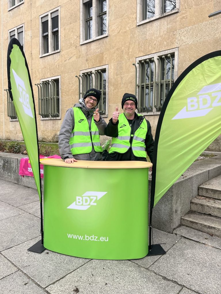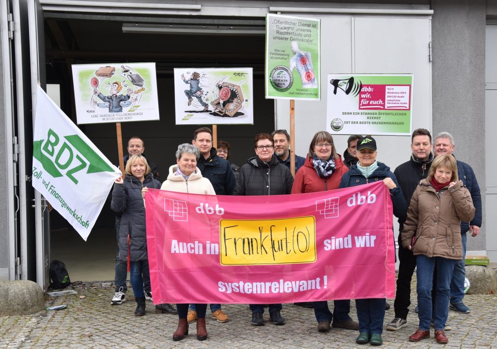 Nunmehr wurde der Protest gegen die Verweigerungshaltung der Arbeitgeberseite in die Fläche ausgeweitet. Bundesweit fanden diverse Aktionen des BDZ vor den HZÄ und ZÄ statt, so auch bereits am 06.02.23 in Oderberg und am 14.02.2022 bei den HZÄ Potsdam, Berlin und Frankfurt/Oder (siehe Bildergalerie). Den zahlreichen Beteiligten herzlichen Dank für die Organisation und tolle Umsetzung der Aktionen vor Ort.