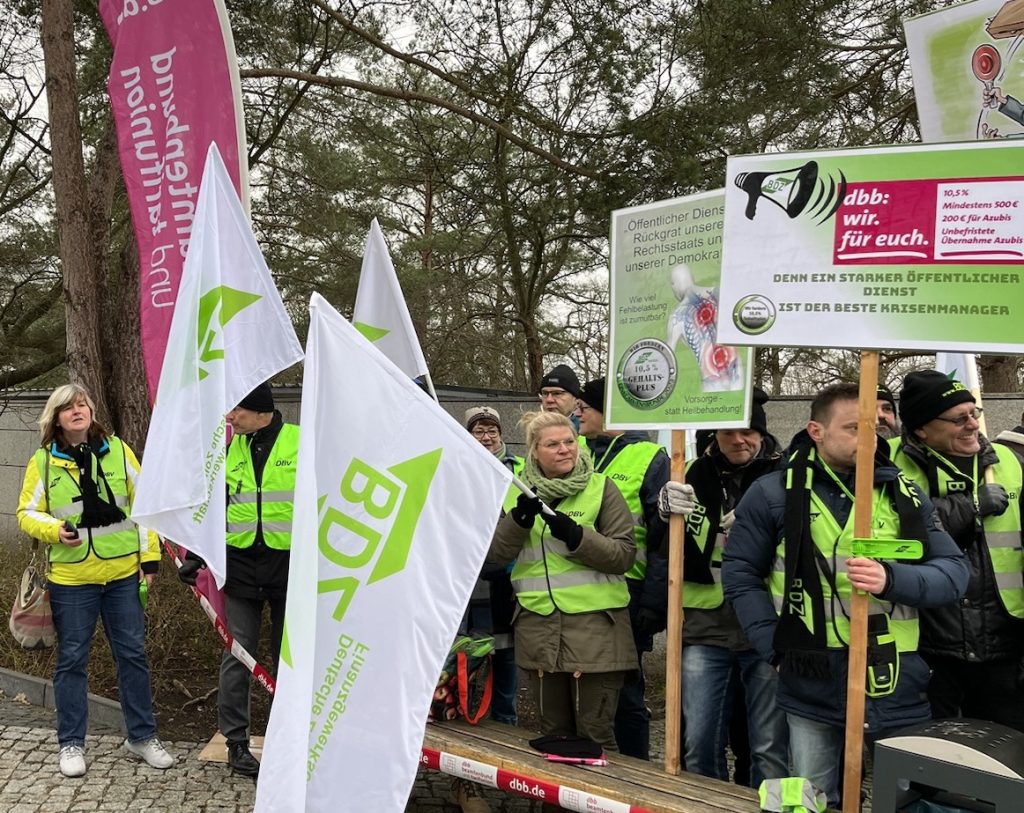 Am 24.01.2023 begannen die Tarifverhandlungen des öffentlichen Dienstes im Bereich des Bundes und der Kommunen in Potsdam. Der Bezirksverband Berlin-Brandenburg des BDZ hat mit 26 Teilnehmern/innen, stellvertretend für den gesamten BDZ, vor Ort lautstark auf unsere berechtigten Forderungen im Tarifkampf aufmerksam gemacht.
