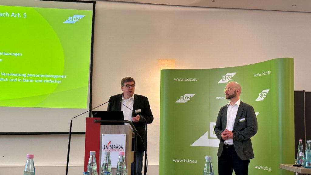 Mit Impulsvorträgen bspw. zu aktuellen Neuerungen im BPersVG, zum Einsatz von KI in der Verwaltung oder dem Personalentwicklungskonzept in der Zollverwaltung sowie ein Austausch zum Projekt „Zoll 2030“ gibt es viel interessanten Input für das Auditorium. Im Rahmen von fünf unterschiedlichen Arbeitsgruppen, die jeweils von Experten-Teams aus Verwaltung und Personalvertretung begleitet werden, sind die vorgenannten Themen nochmal genauer betrachtet worden. Unser Bezirksverband wurde von Katrin Janus als Mitglied des Bezirkspersonalrates (AG „Arbeitszeit – Arbeitswelt“) und Simon Schneider als Vertreter des Hauptpersonalrates (AG „BPersVG – Datenschutz“) in den Expertenrunden vertreten.