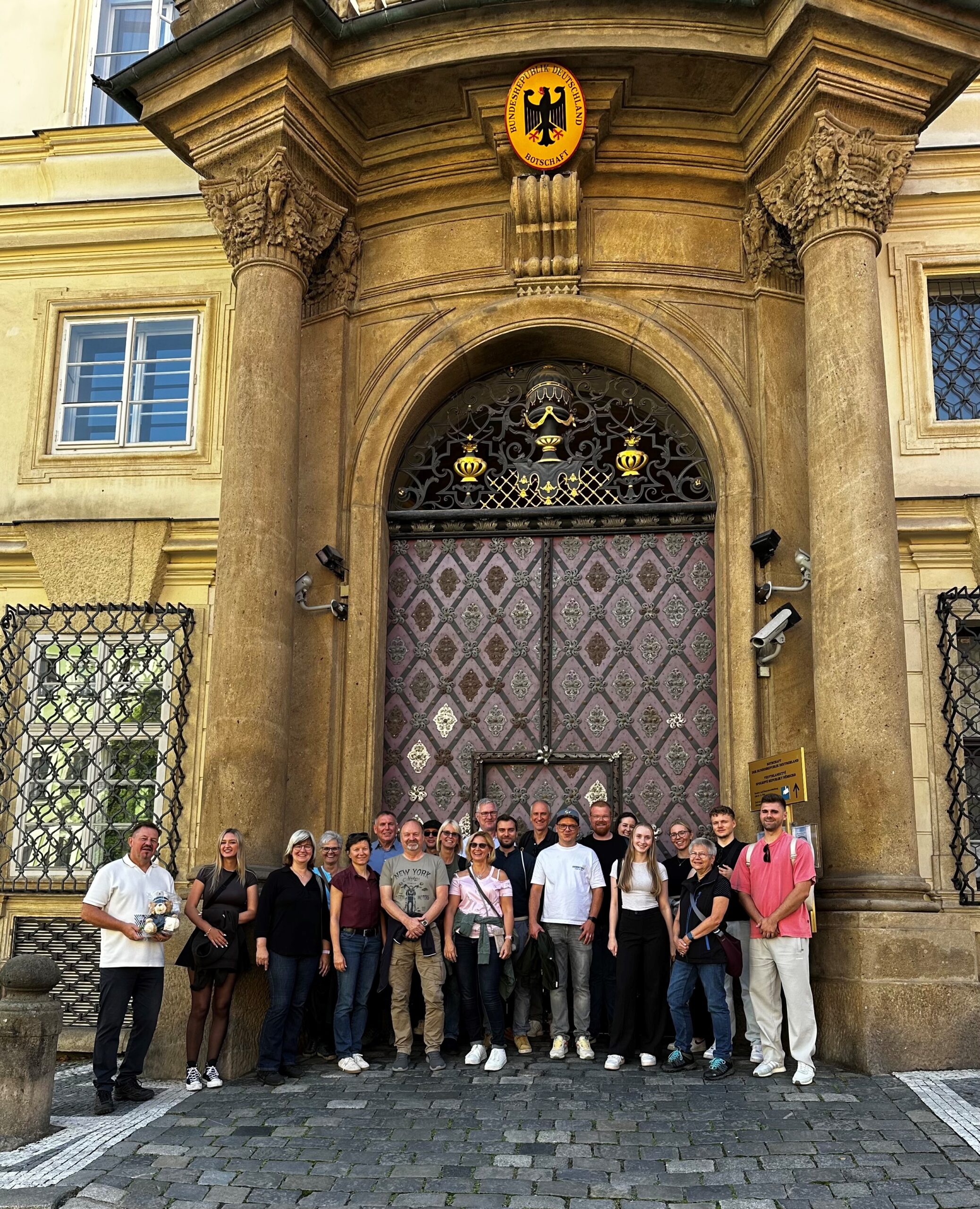 Das Highlight, da waren sich am Ende alle einig, erwartete uns direkt zu Beginn der Reise. Wir besuchten die Deutsche Botschaft in der tschechischen Hauptstadt. Thomas Rapp, Zollverbindungsbeamter, empfing uns vor Ort und bot uns eine Führung der ganz besonderen Art. Die Botschaft, untergebracht in einem historischen Gebäude, dem Palais der Familie Lobkowicz, erzählte allein schon viele denkwürdige Geschichten.