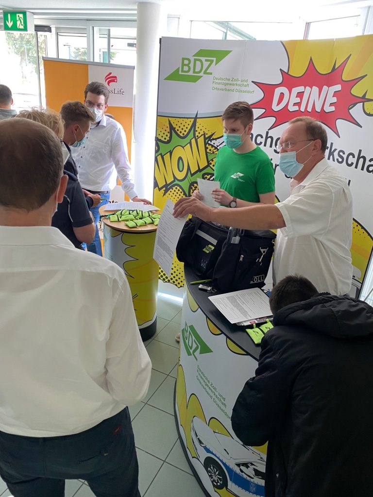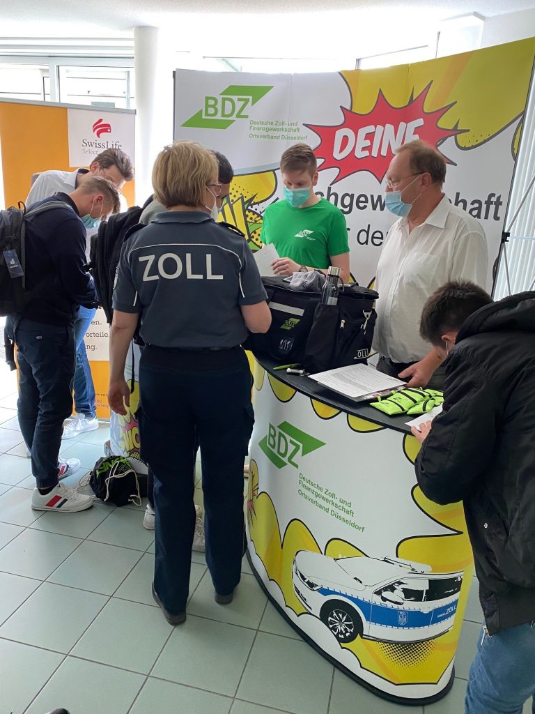 Der BDZ – Ortsverband Krefeld führte am 05. und 09. August seine diesjährige Anwärter – Werbekampagne durch. Diesmal unterstützt von zwei Vertretern von Swiss – Life. Fragen zu den Leistungen des BDZ und der DBB – Vorteilswelt konnten den Anwärterinnen und Anwärtern an Hand von praktischen Beispielen und dem ausgelegten Informationsmaterial beantwortet werden. Ein besonderer Dank gilt dem BDZ – Ortsverband Düsseldorf, der uns seinen tollen Infostand kostenlos zur Verfügung gestellt hat.