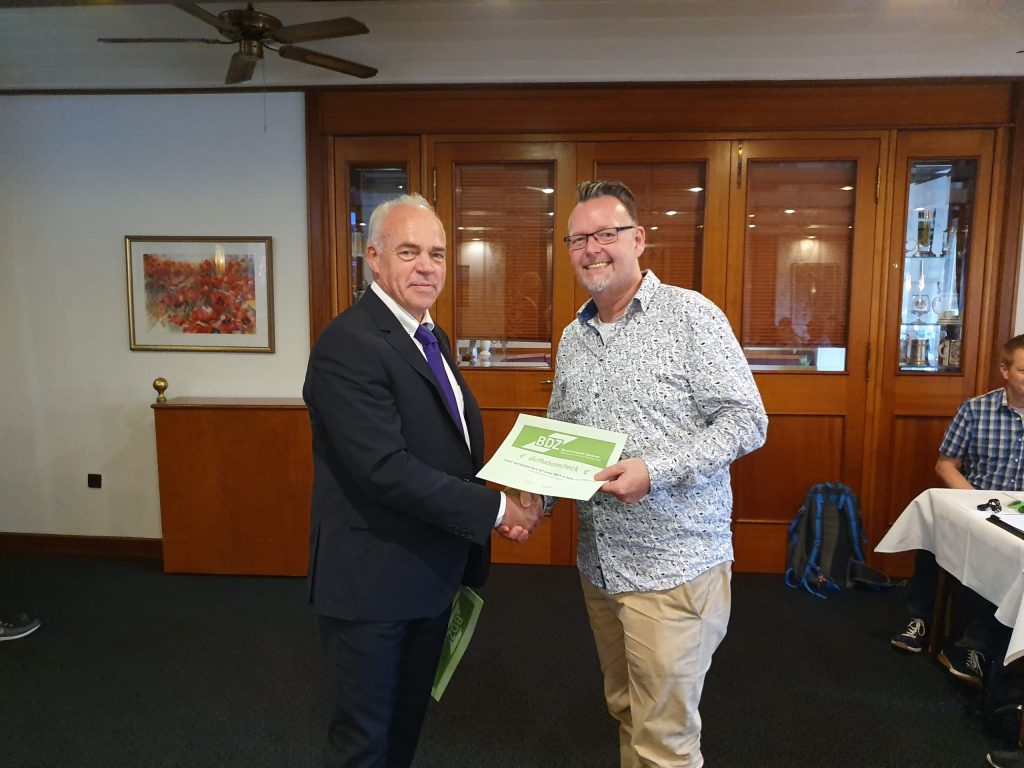 Fast alle Ortsverbände des BV Hannover e.V. hatten im vergangenen Jahr Veranstaltungen für Ihre Mitglieder organisiert. Die Kosten dafür wurden mit einem entsprechenden Antrag an die Bundesgeschäftsstelle mit der Bitte um Bezuschussung auch durch den Bundes-BDZ weitergeleitet. Die Anträge wurden dort wohlwollend geprüft und dementsprechend konnte der Bezirksverbandsvorsitzende auf der BeHaVo in Bremen die abgebildeten Beauftragten der Ortsverbände mit einem symbolischen Gutscheinscheck für Ihre Ortsverbandskasse „überraschen“. Ihr Lächeln in die Kamera sagt mehr als 1000 Worte! Auch in diesem Jahr können für förderungswürdige Veranstaltungen, nach vorheriger Rücksprache mit dem BV-Vorstand, Anträge auf Bezuschussung gestellt werden.