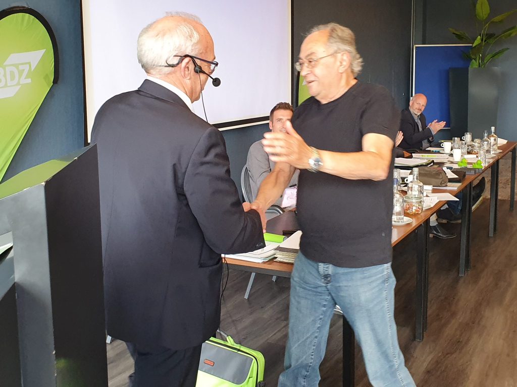 Der BV-Vorsitzende Olaf Wietschorke konnte zu Sitzungsbeginn neben den anwesenden Mitgliedern und Gästen des BeHaVo recht herzlich den Leiter des HZA Osnabrück Regierungsdirektor Dr. Thomas Möller begrüßen. In seinem Grußwort ging Dr. Möller auf die derzeitige Situation in der Zollverwaltung aus Sicht eines Leiters einer Ortsbehörde ein. Seine Ausführungen über die Abordnungen zur Verstärkung anderer Bereiche (insbesondere im Zusammenhang mit den erfolgten Hotspotzweitverwendungen und den Brexitverstärkungen), die externe Stellenausschreibungen oder auch die Unterbringung der Kolleginnen und Kollegen im Bereich des HZA Osnabrück fanden reges Interesse der Delegierten und führten anschließend zu einer ausgiebigen Diskussion. Als Ehrengast konnte der BV Hannover auch den Bundesehrenvorsitzenden Klaus Hilger Leprich begrüßen, welcher mittlerweile dem BV Hannover angehört. Im Rahmen dieser Hauptvorstandssitzung wurde unser Beauftragter für Senioren, Kollege Norbert Rother, sehr herzlich und mit großem Applaus von dem Gremium verabschiedet. Neben Norbert Rother dankte der Vorsitzende auch der/den langjährigen ehemaligen Vorsitzenden der Ortsverbände (OV) Bremen Ingrid Rentner, OV Emden Jürgen Schülzke, OV Oldenburg Heinrich Voß, OV Braunschweig Jürgen Engler und OV Bremen Zollfahndung Jürgen Daudert für Ihr Engagement für den BDZ.