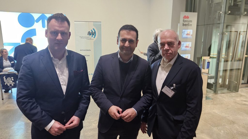Die Veranstaltung bot zudem wieder reichlich Raum für Austausch und Vernetzung. Bei über 600 Zuhörern hatten Thomas Liebel und ich leider nur die Gelegenheit mit MdB Bijan Djir-Sarai, Generalsekretär der FDP, kurz persönlich zu sprechen. Im Foyer des dbb sind wir aber vor und nach der Diskussionsrunde mit den anderen Teilnehmenden, u. a. den dbb Bundesvorstandsmitgliedern, ins Gespräch gekommen.
