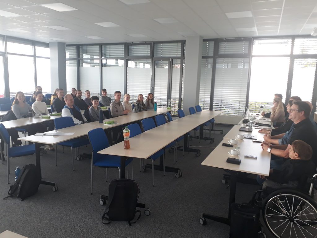 Tim Lauterbach informierte die Auszubildenden z.B. über die bevorstehende Ausstattung mit Dienstkleidung, die amtsangemessene Alimentation und über die Forderungen zur Tarifrunde im nächsten Jahr.