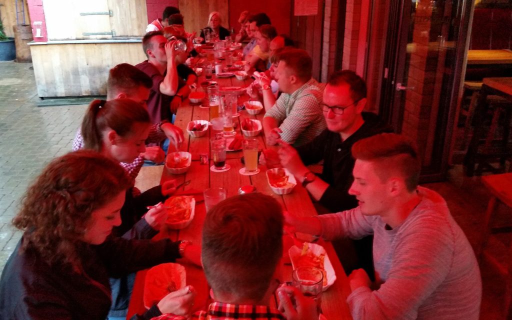 Anschließend hat der OV Dortmund in Zusammenarbeit mit dem Kooperationspartner, der Signal Iduna – Bezirksdirektion André Lange, alle Nachwuchskräfte zu einer interessanten Stadionführung in das Westfalenstadion eingeladen. Im Anschluss wurde bei einer leckeren Currywurst im Strobels, der Location am Stadion, noch das eine oder andere Wissenswerte besprochen.