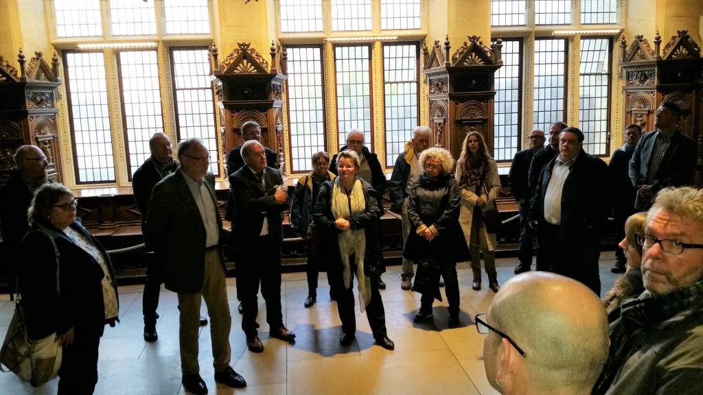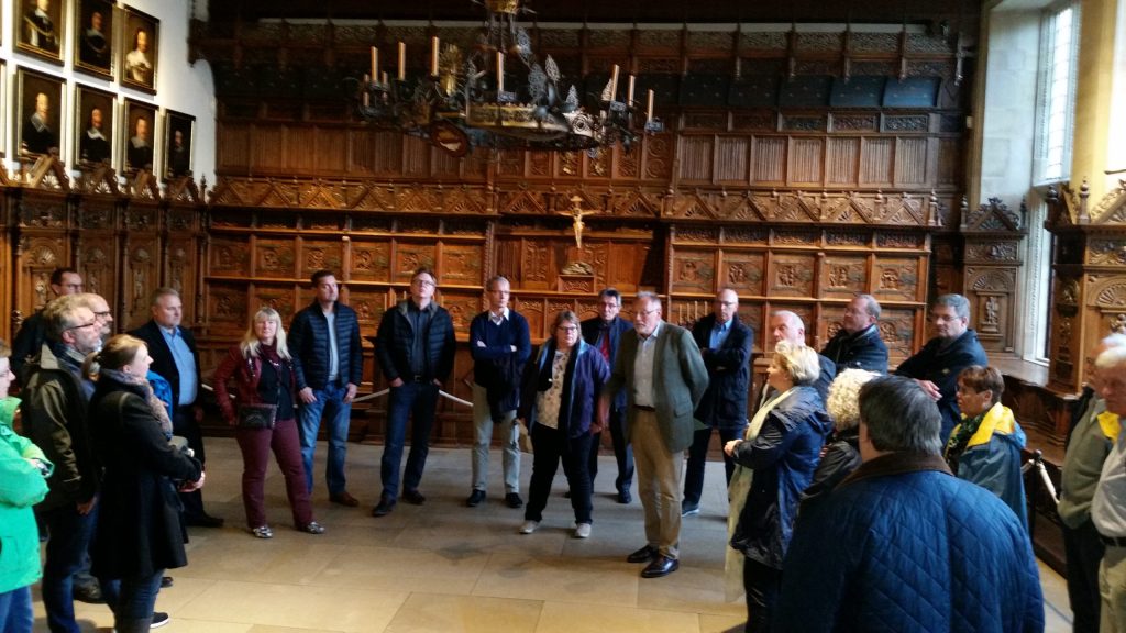Der Bezirksverband Westfalen hatte daher zum Bürgermeisterempfang in den Friedenssaal des historischen Rathauses in Münster eingeladen. Der Bürgermeister, Gerhard Joksch, hieß die Mitglieder des Bundesvorstands herzlich willkommen und erläuterte die Geschichte rund um die Friedensverhandlungen.