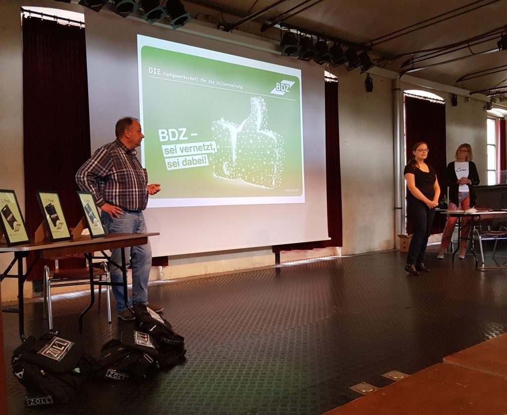 Im Rahmen des Einführungspraktikums hat der BDZ Ortsverband Bielefeld sich und die Arbeit des BDZ vorgestellt. Die Veranstaltung fand im Saal der Hechelei in Bielefeld statt. Unterstützt wurde die Ortsverbandsvorsitzende (Caroline Schadwinkel) durch Andreas Fabig (stellv. OV-Vorsitzender) und Susanne Imort-Baumhöfer, einer Vorsorgespezialistin für das dbb vorsorgewerk. Neben den schon zu Wochenbeginn verteilten BDZ-Sportbeuteln, informierte der Ortsverband über die Arbeit, Ziele und Erfolge des BDZ.