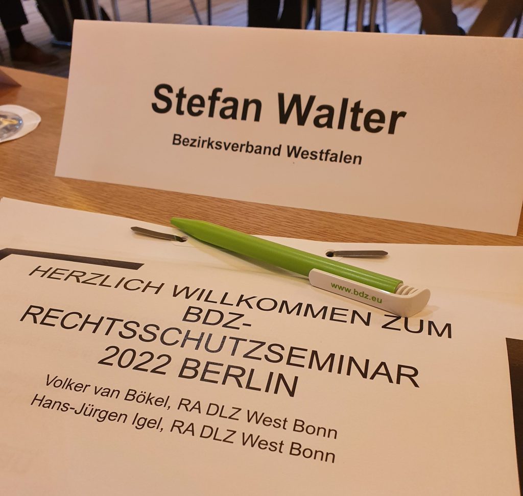 Am 11. Mai 2022 trafen sich in Berlin Mitglieder der BDZ-Bundesleitung und der BDZ-Bundesgeschäftsstelle sowie die Rechtsschutzbeauftragten aus den Bezirksverbänden. Ebenfalls nahmen zwei Rechtsanwälte des dbb Dienstleistungszentrum West teil, die auch den Erfahrungsaustausch moderierten. In der Veranstaltung wurden zunächst rechtliche Grundlagen des Rechtsschutzes und Regelungen der Rahmenrechtsschutzordnung im Einzelnen erörtert. Die Teilnehmenden gingen auf BDZ-spezifische Besonderheiten ein und konnten auch beispielhafte Einzelfälle besprechen.
