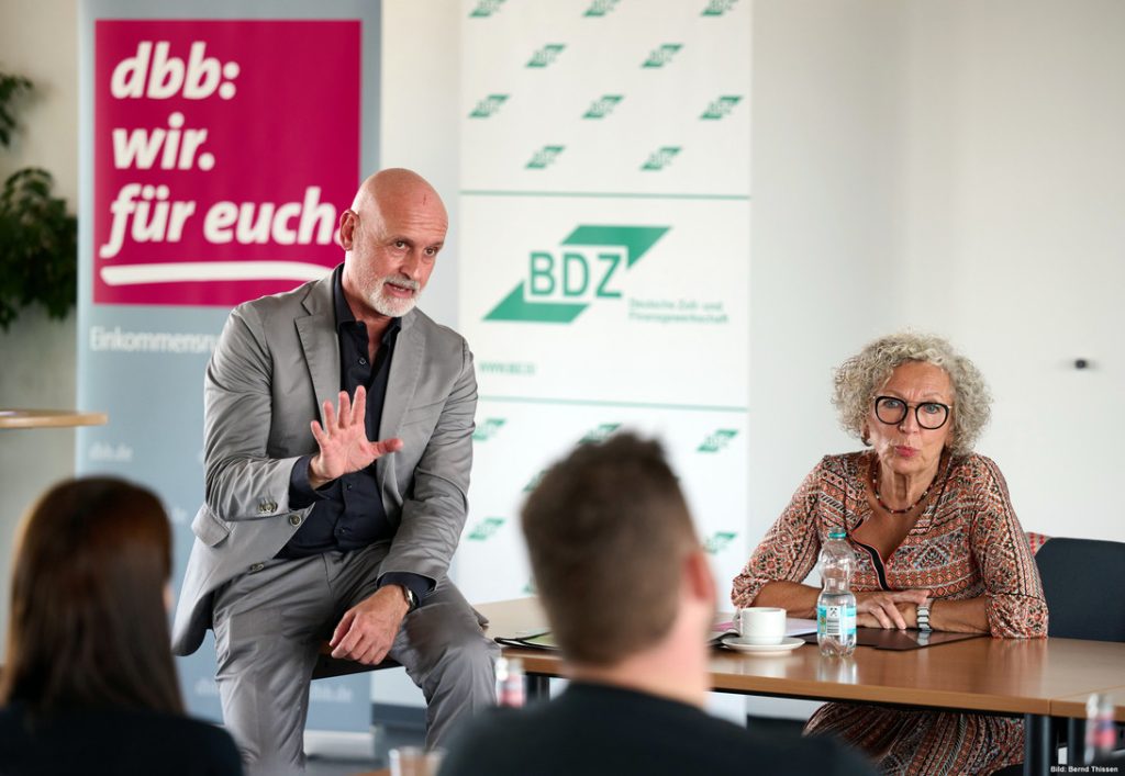 Den Dortmunder Branchentag, der im Rahmen einer aktiven Mittagspause beim HZA Dortmund stattgefunden hat, eröffnete Volker Geyer, dbb Fachvorstand Tarifpolitik und stellv. dbb Bundesvorsitzender gemeinsam mit Stefan Walter, Vorsitzender des BDZ Westfalen und des örtlichen Personalrates. Adelheid Tegeler, stellv. Bundesvorsitzende des BDZ und Mitglied der dbb Bundestarifkommission war ebenfalls vor Ort und ergänzte die Runde mit den Erfahrungen aus den letzten Einkommensrunden.