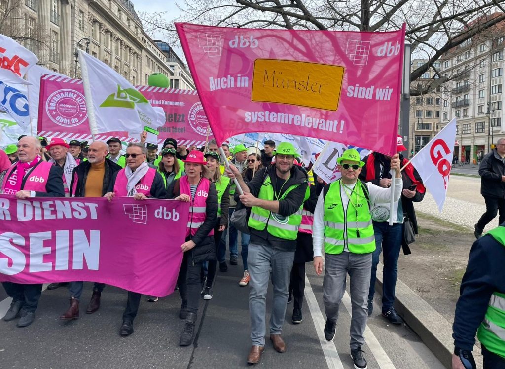 An der Großdemo des dbb in Berlin haben zahlreiche Mitglieder des BDZ Westfalen am 22. März 2023 teilgenommen. Sie setzten ein deutliches Zeichen vor der nächsten Verhandlungsrunde, die nächste Woche beginnen wird.