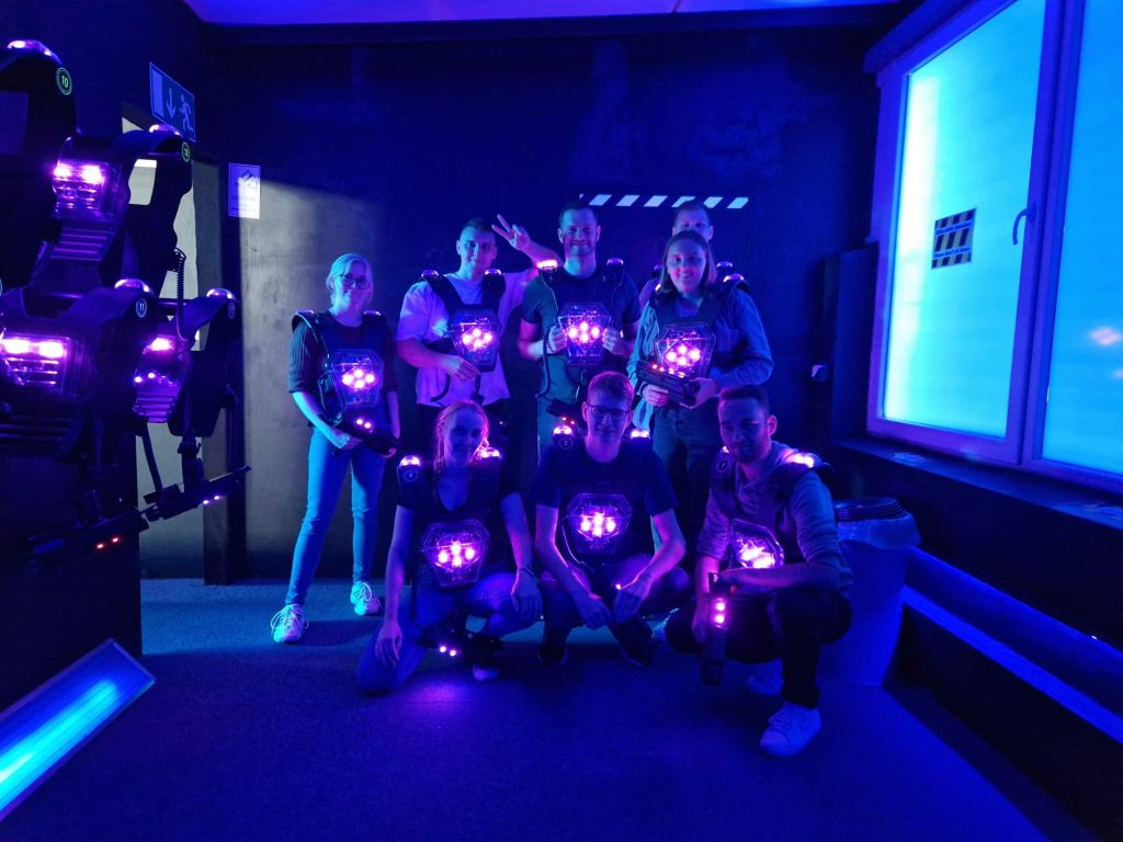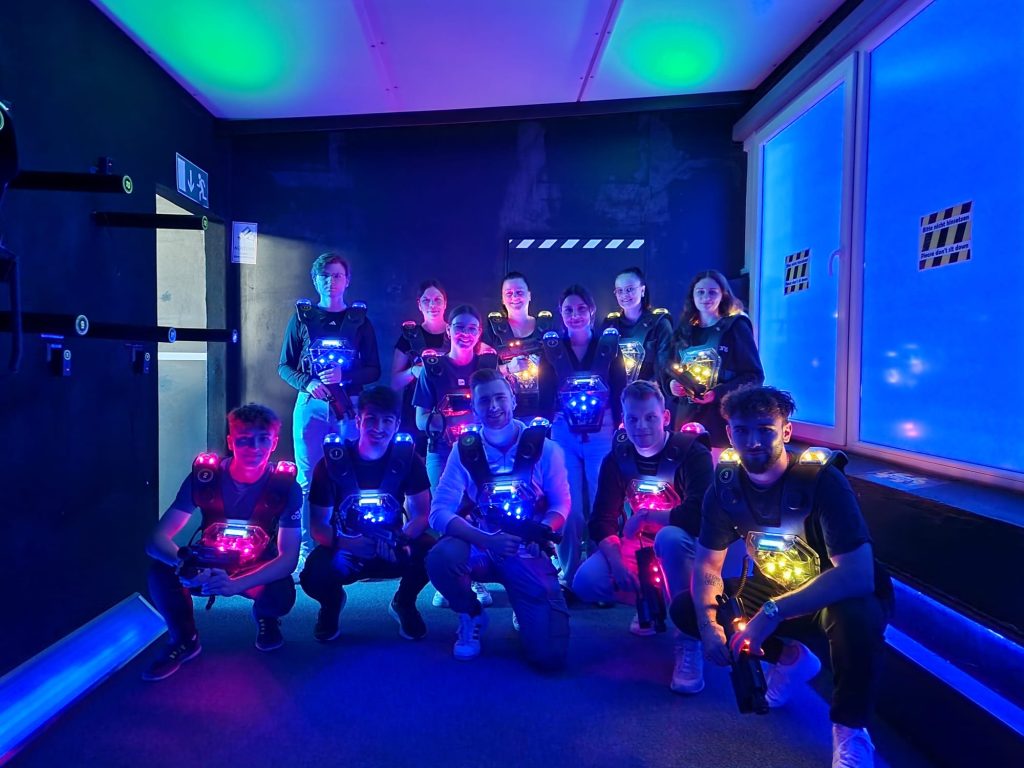 Nachmittags trafen sich dann alle zum gemeinsamen Lasertag-Game im Lasermaxx Münster. Marcell Borrmann, Bezirksjugendleiter des Bezirksverbands Westfalen, und die Kolleginnen Jaqueline Riedel und Mellisa Alves Rodrigues (beide vom HZA Münster) unterstützten den Ortsverband bei der Organisation und Durchführung der Veranstaltung tatkräftig. Es wurden vier Spielergruppen gebildet, welche nacheinander um die höchste Punktzahl kämpften. Die Trefferquoten und die Punktestände wurden selbstverständlich zum Spielende ausgewertet und verglichen.