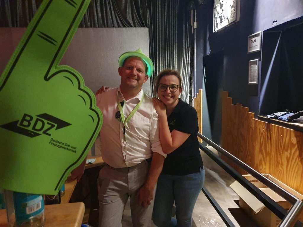 Am 22. August 2023 organisierte das Hauptstudium I eine Willkommensfeier für das neue Grundstudium unter dem Motto „GS meets H1“. Die Organisatoren haben in die Jovel Music Hall eingeladen und insgesamt 1.300 Anwärterinnen und Anwärter des gehobenen Zolldienstes haben die Gelegenheit genutzt, sich in bester Partylaune besser kennenzulernen. Der BDZ hat die Veranstaltung als einziger Sponsor gefördert. Neben den vom BDZ ermöglichten Fotoboxen, die auch schöne Erinnerungen im Bild festgehalten haben, konnten die Partygäste am legendären BDZ-Glücksrad tolle Preise gewinnen. Der Bezirksverband Westfalen wurde durch den Vorsitzenden der BDZ-Jugend (Tim Lauterbach) unterstützt, der mit zahlreichen Nachwuchskräften am Rande des Partygeschehens ins Gespräch kam.