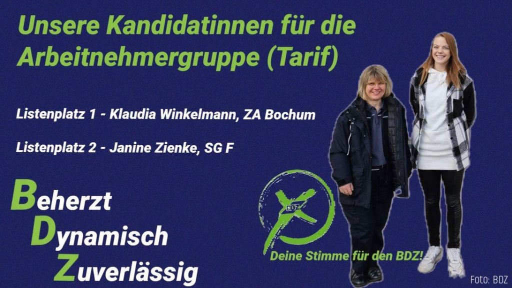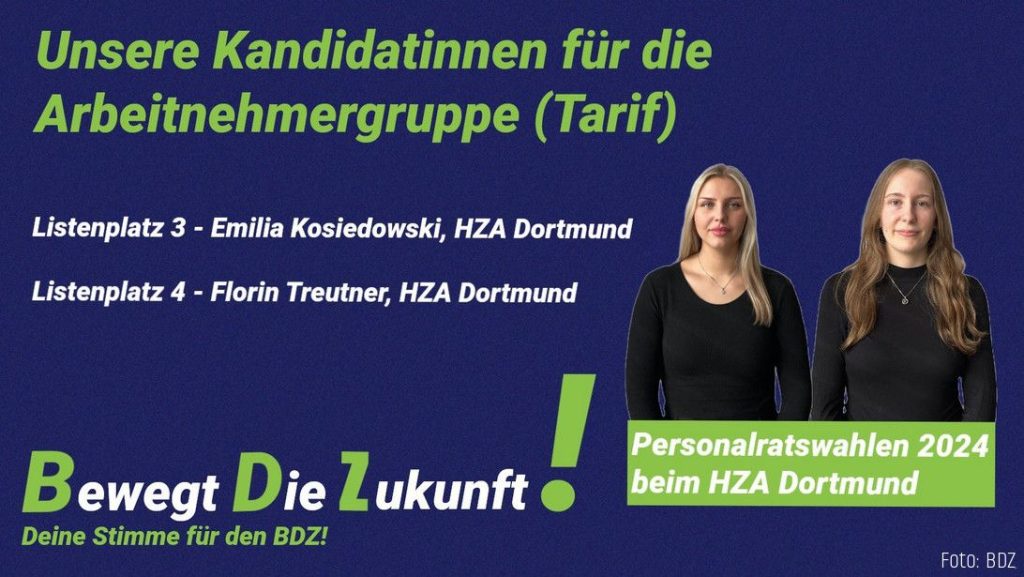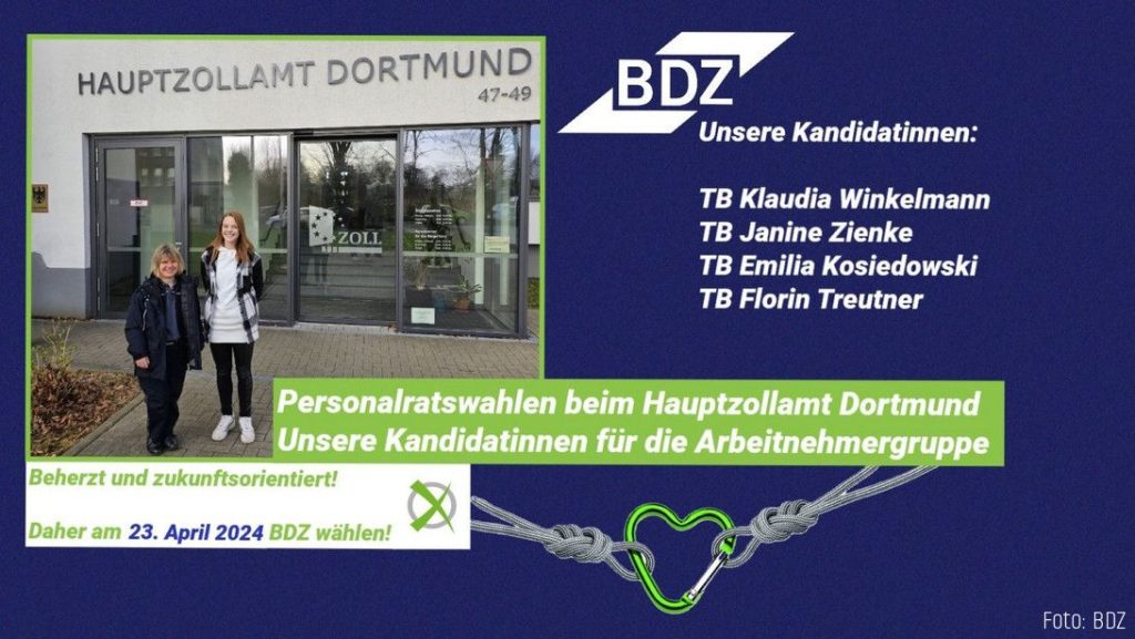 Am 23. April 2024 wird beim HZA Dortmund ein neuer Personalrat gewählt. Heute möchten wir die Kandidatinnen der Arbeitnehmerliste (Tarif) des BDZ kurz vorstellen.