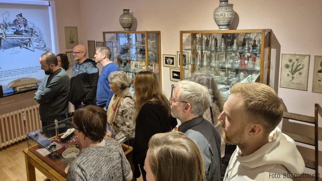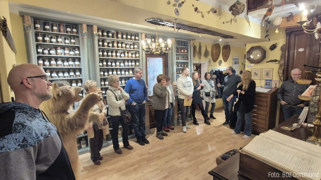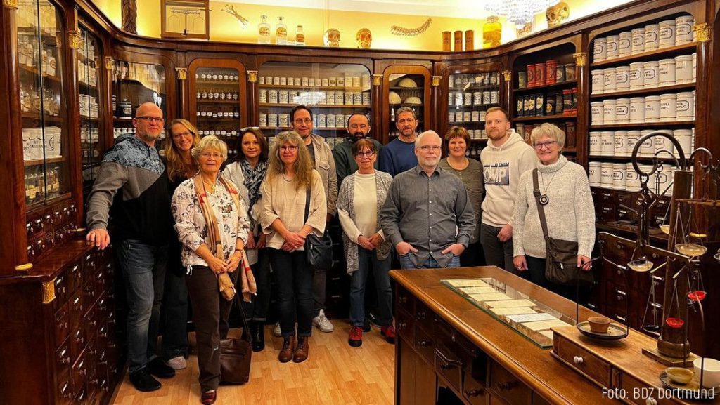 Am 07. Februar 2025 fand ein Ausflug des Ortsverbands Dortmund ins Apothekenmuseum statt. Das private Apothekenmuseum ist mit über 15.000 Exponaten die größte pharmaziehistorische Sammlung im deutschsprachigen Raum. Den BDZ-Mitgliedern wurde bei der Führung in 13 verschiedenen Räumen ein beeindruckender Einblick in die Geschichte der Pharmazie gegeben. Die eindrucksvollen Exponate der Ausstellung begeisterten die Teilnehmenden und führte zu einer kleinen Zeitreise in die Vergangenheit. Neben historischen Arzneien, kostbaren Ausstellungsstücken und einer Dauerleihgabe des HZA Dortmund konnten so manche skurrile Exponate bestaunt werden.