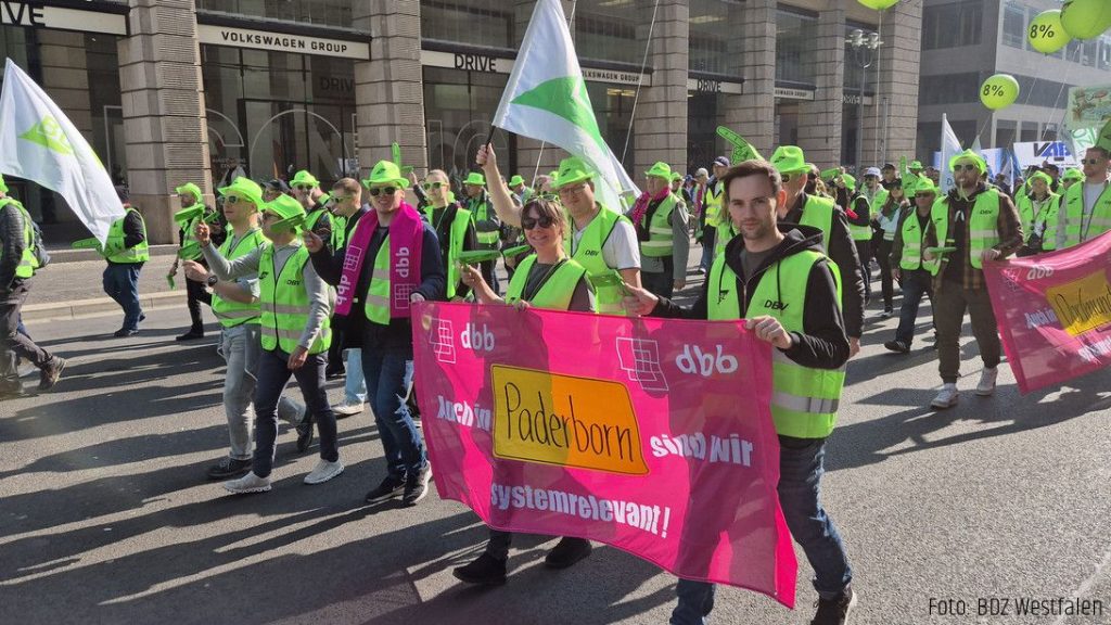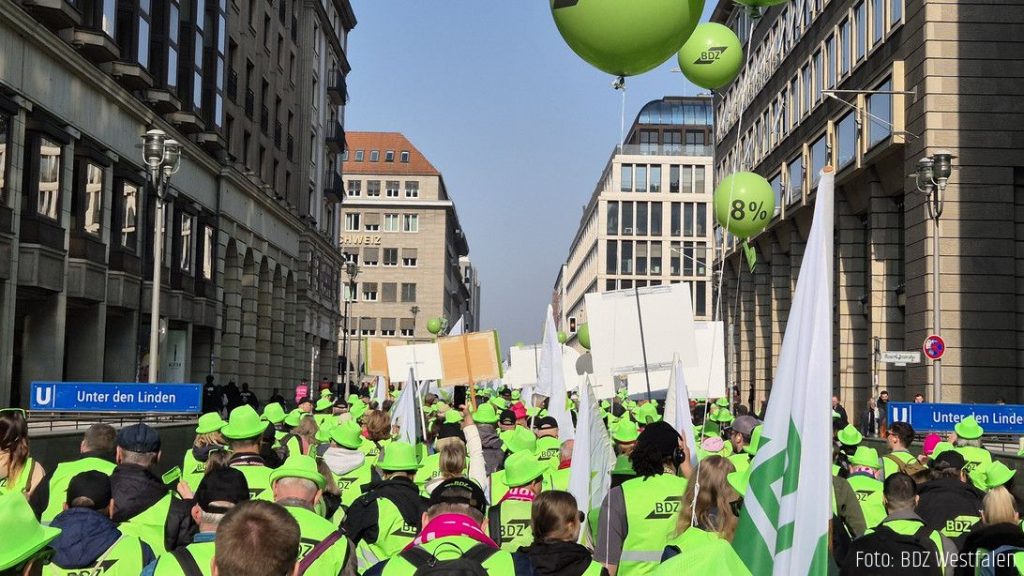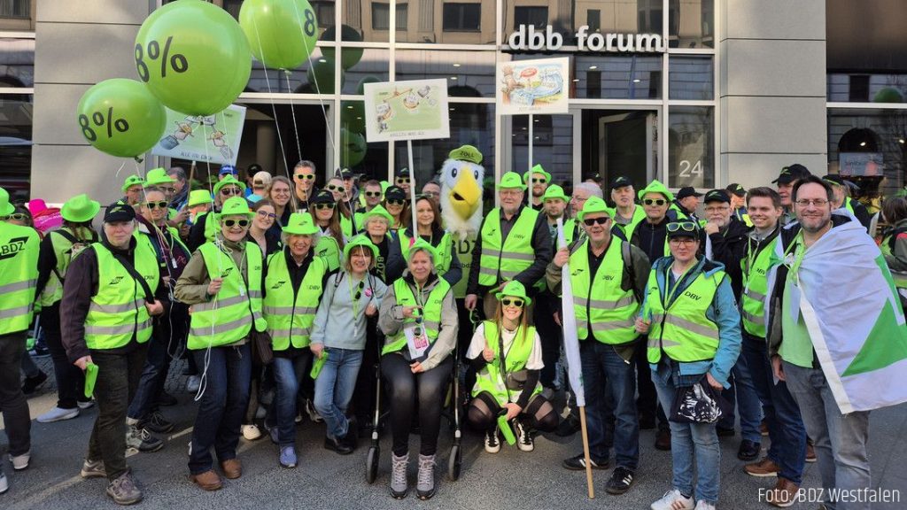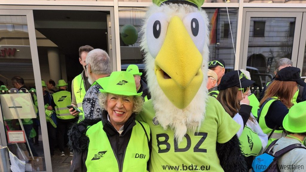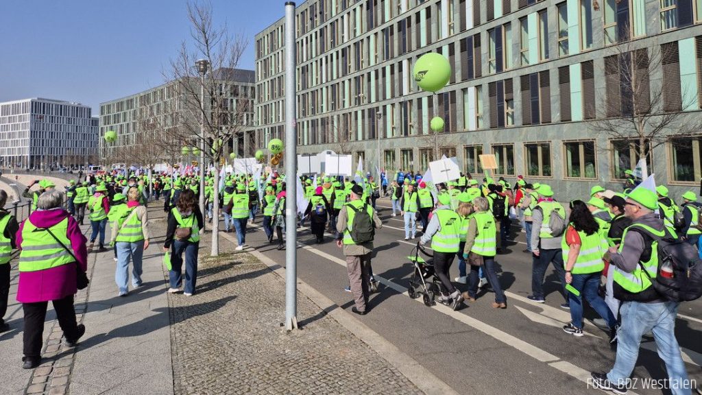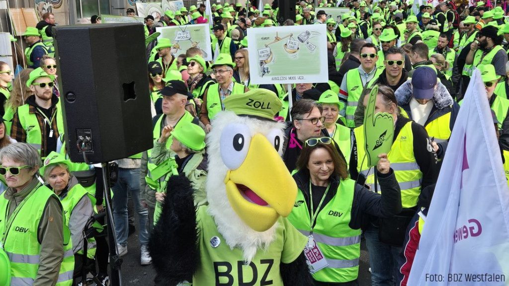 Am 10. März 2025 fand eine Großdemo des dbb und des BDZ in Berlin statt. Der BDZ hat zu dem Warnstreik und der Protestkundgebung aufgerufen, sodass über 600 Mitglieder der Aufforderung folgten und nach Berlin gereist sind. Der Bezirksverband Westfalen war mit einer starken Präsenz vor Ort dabei und stellte allein über 50 Teilnehmerinnen und Teilnehmer.