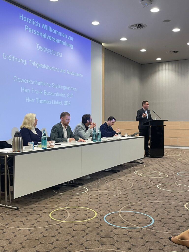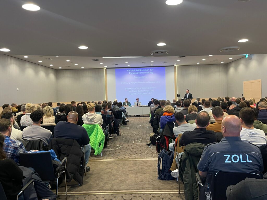 Der BDZ-geführte Personalrat des HZA Dortmund hat am 18. November 2025 zur Personalvollversammlung eingeladen. Neben der Teilnahme der Direktionspräsidentin der Direktion VII (FKS), Frau Constanze Voß, hat der Bundes­vorsitzende des BDZ, Thomas Liebel, ebenfalls teilgenommen.