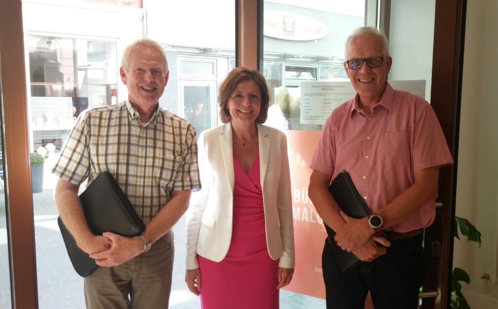 Die rheinland-pfälzische Ministerpräsidentin Malu Dreyer (SPD) mit den Vertretern des BDZ-Bezirksverbands Rheinland-Pfalz Reiner Angermann (3.v.l.) und Theo Backendorf (1.v.l.)