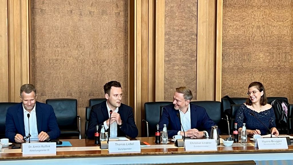 v.l.n.r.: Dr. Armin Rolfink (Abteilungsleiter III im BMF), Thomas Liebel (BDZ Bundesvorsitzender und Vorsitzender HPR), Christian Lindner (Bundesminister der Finanzen), Illyana Brugger (Vorsitzende HJAV)
