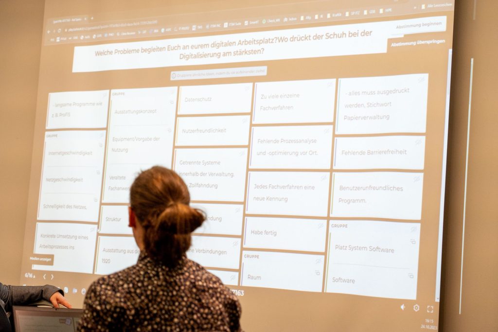 Dabei nahmen die Teilnehmenden vor allem die Handlungsfelder Technik und Organisation in das Blickfeld. Durch zahlreiche interaktive Elemente konnten sich alle Besucherinnen und Besucher zu einzelnen Abfragen äußern. Auf diese Weise sollte ein Bild erzeugt werden, wo nach Ansicht der Kolleginnen und Kollegen derzeit der größte Handlungsbedarf besteht.