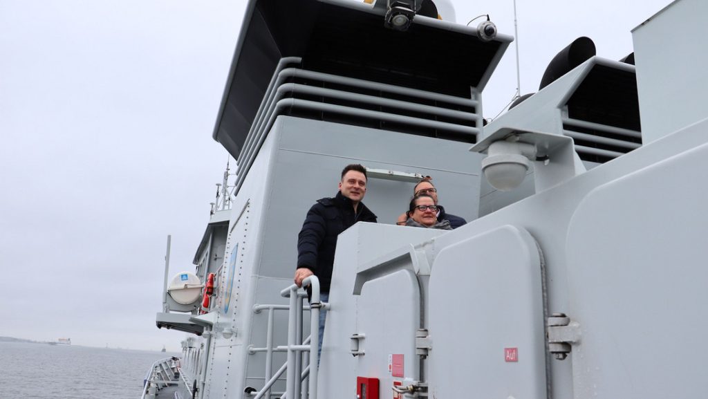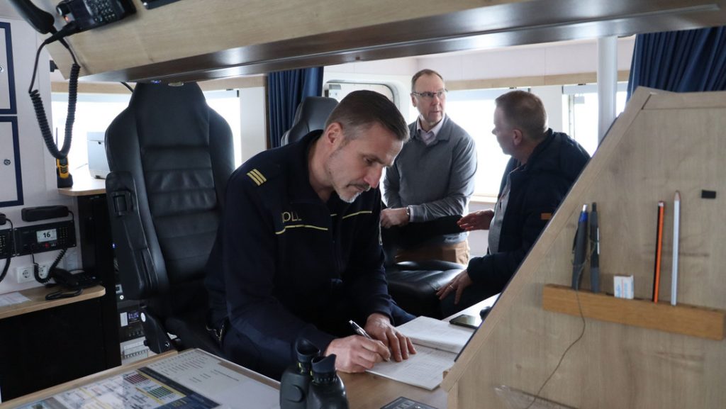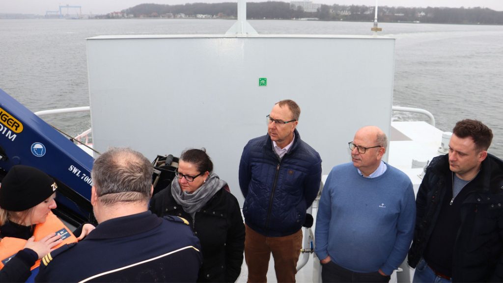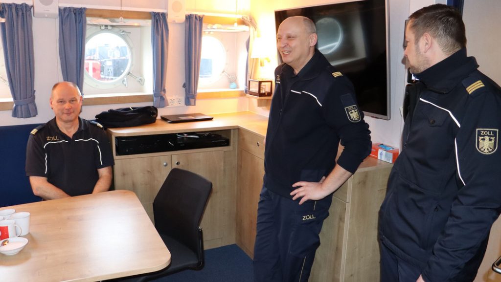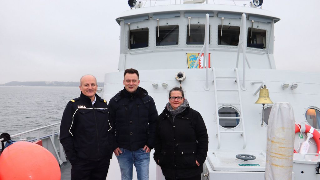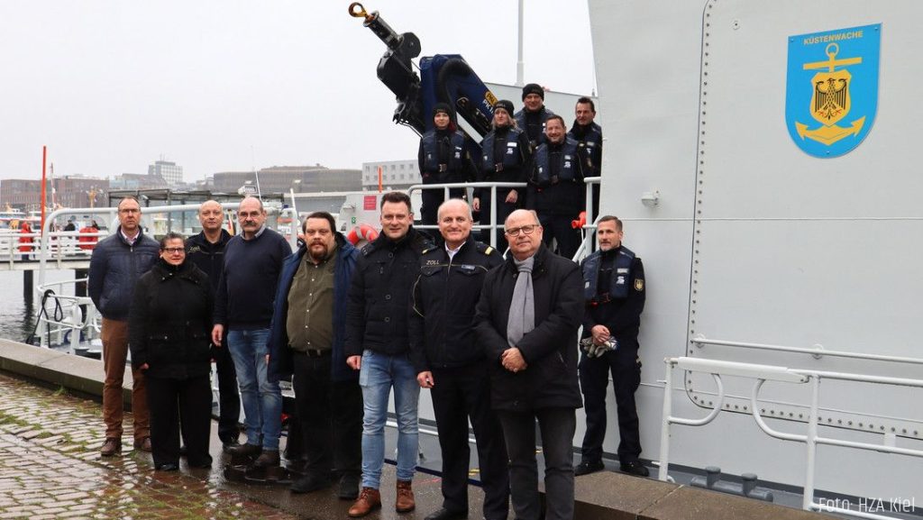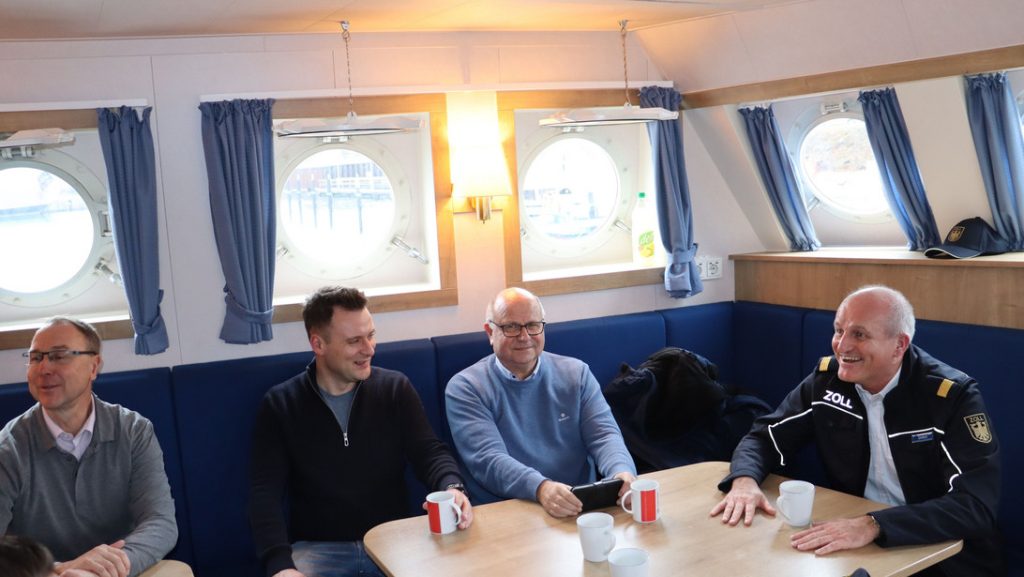 Im Anschluss an die Sitzung der Arbeitsgemeinschaft folgten die Mitglieder der Bundesleitung der Einladung des Leiters des Hauptzollamtes Kiel, Robert Dütsch, zu einer Zollbootfahrt auf der Kieler Förde. Die Fahrt wurde genutzt, um Gespräche mit der Besatzung des Zollbootes Schleswig-Holstein und dem Leiter des HZA zu führen. Die Kolleginnen und Kollegen bestätigten die seitens der Arbeitsgruppe entwickelten Eckpunkte.